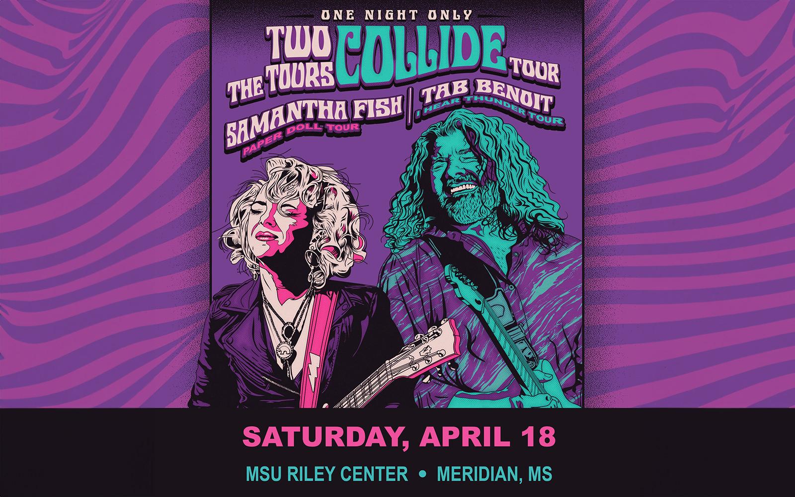 STARKVILLE, Miss.—Grammy-nominated blues powerhouse Tab Benoit and guitarist Samantha Fish are set to take the stage at Mississippi State-Meridian’s Riley Center April 18, delivering a high-energy night of blues and Americana that’s nearly sold out.